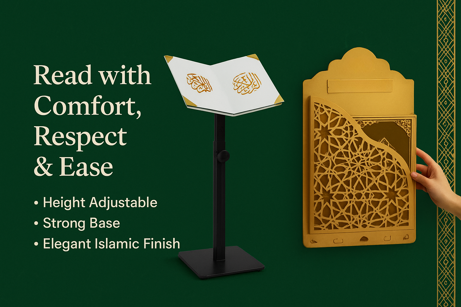 Quran Stand Adjustable Black 33” height White Edition Golden Acrylic work